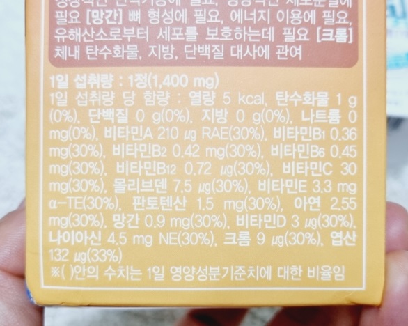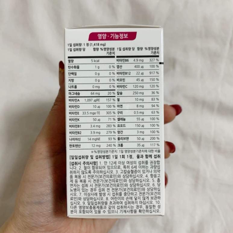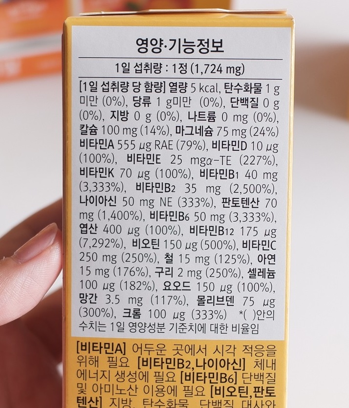 - 고용량 종합비타민 타블릿 형식으로 식사 후에 먹는 것을 권장, 알약이 생각보다 큼