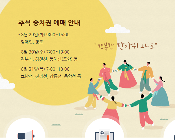 ※ 23년 추석 승차권 예매는 100% 비대면 방식으로 시행 - 대상기간 : 09.27.(수) ~ 10.03(화), 7일간