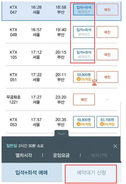 서울에서 부산을 가신다고 해서 꼭 그 열차표만 고집하시면 예매가 어려우실 수 있지만, 경유지를 확인하셔서 나눠서 예매를 할 경우 예매가 가능하실 수 있습니다. 이때에도 반드시 경유지마다 잔여석을 확인하시고 진행하시기 바랍니다.