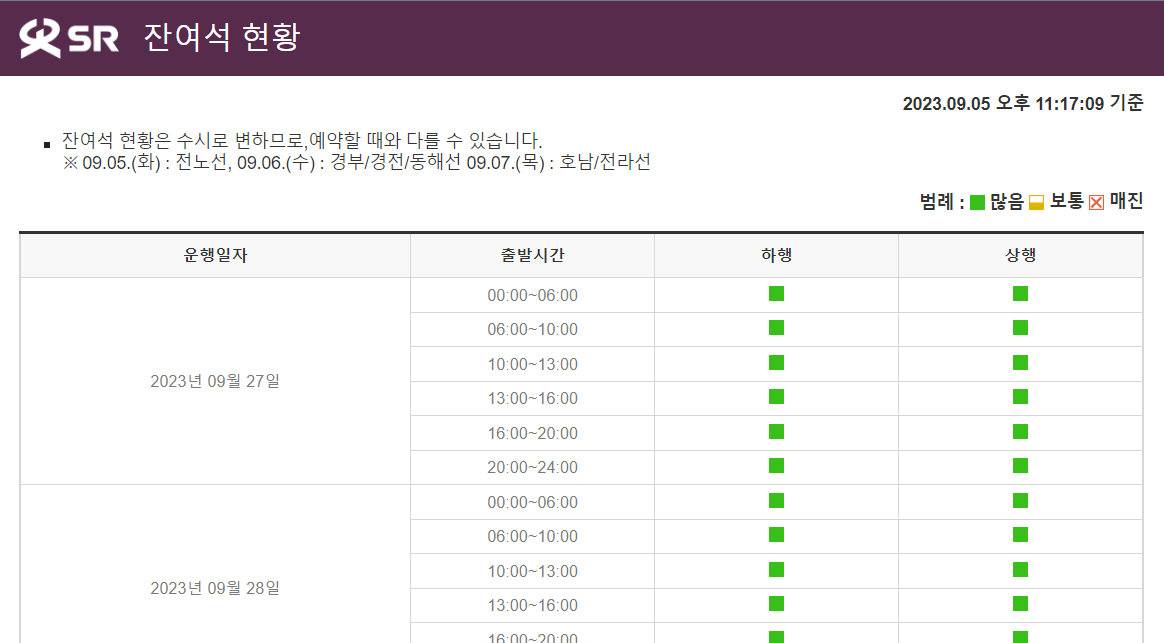경부/경전/동해선 - 09.06.(수) 07:00 ~ 13:00 (모든 고객 예매)